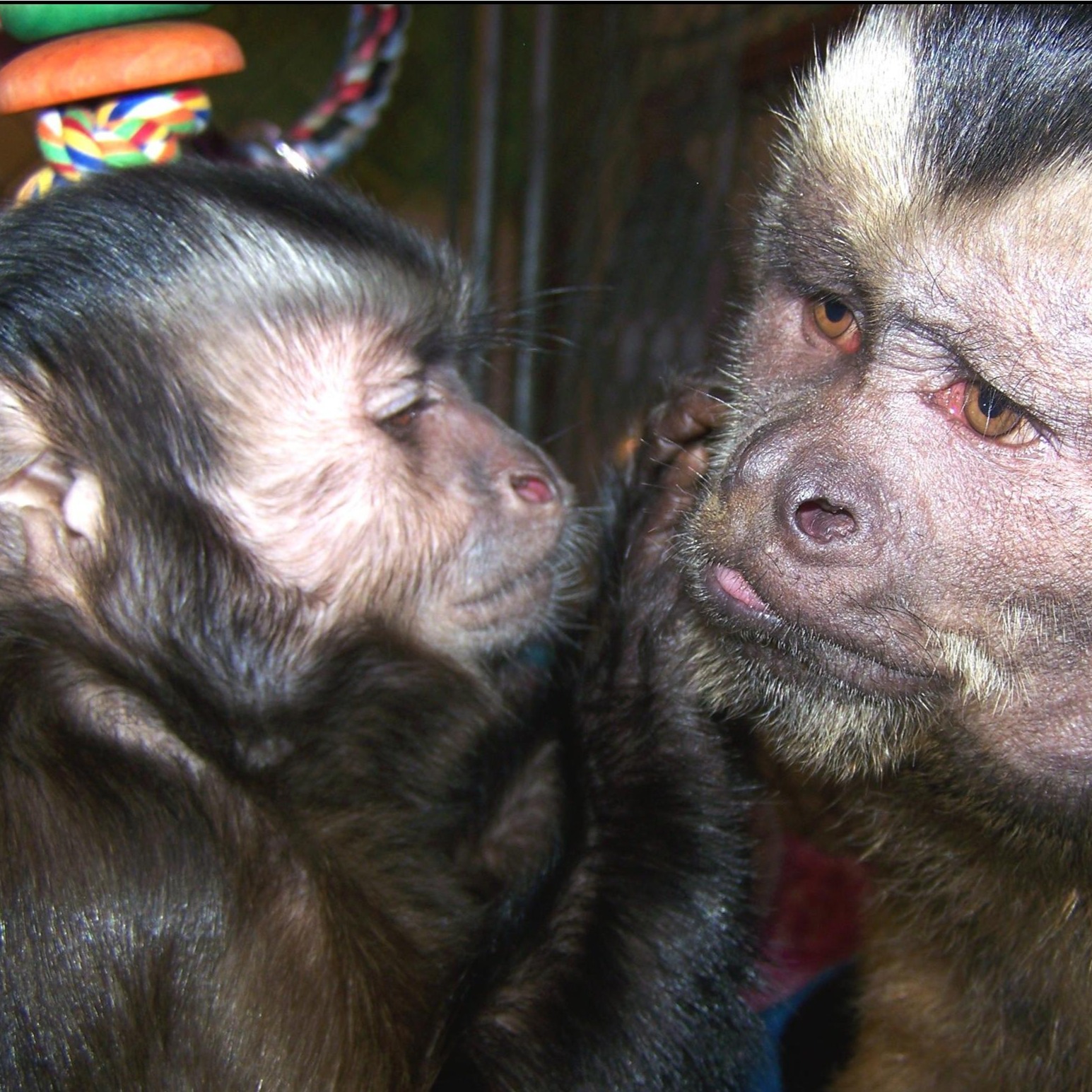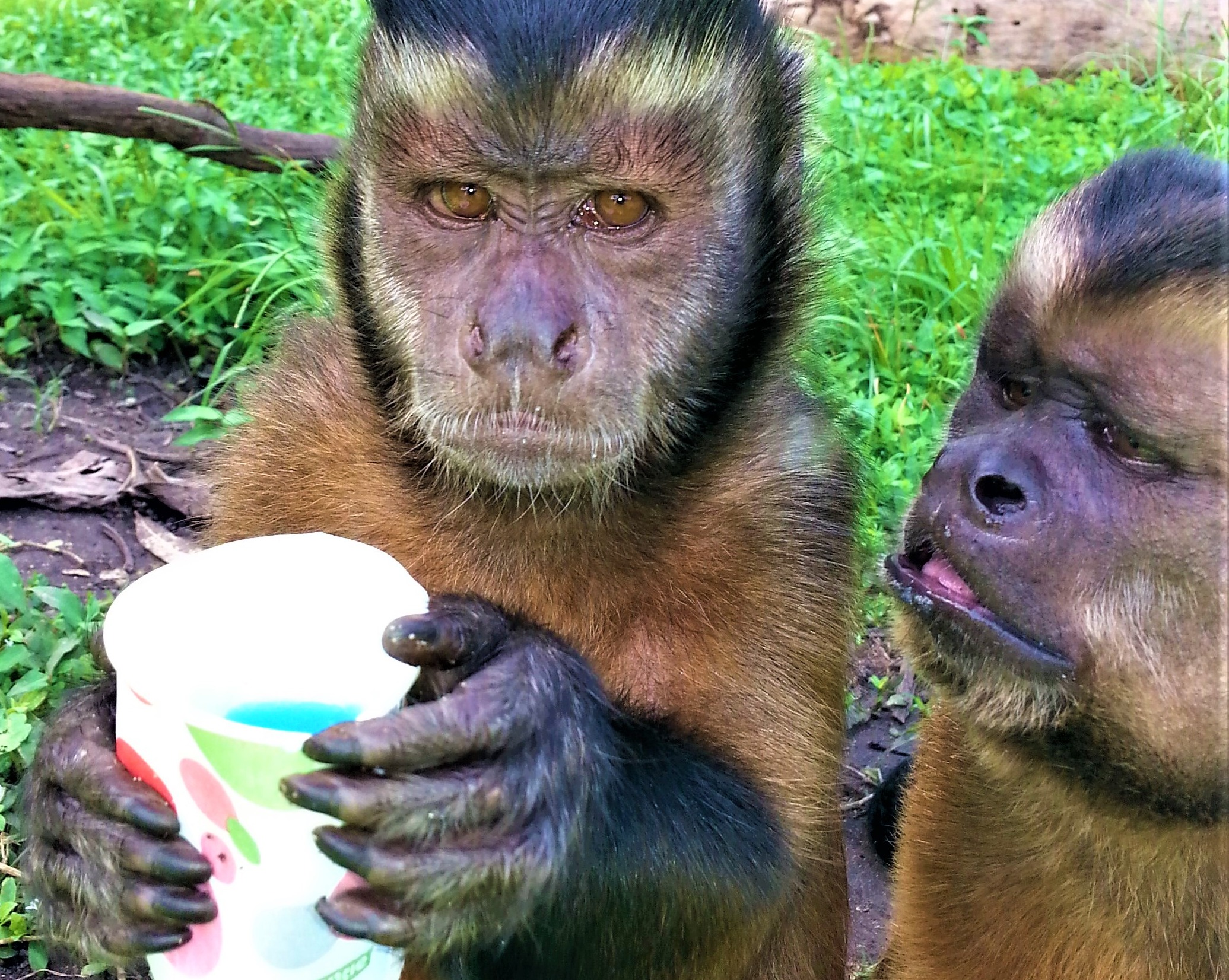 When Andy arrived at Jungle Friends, he was eager to explore his new digs. Before long he was jumping in and out of the hammocks and swinging from the ropes. Andy was so thoroughly "humanized" that he didn't know what to make of all the little brown animals in surrounding habitats. He had to learn that they were monkeys just like him and now Andy and his companion are one of the sanctuary’s “model couples”.