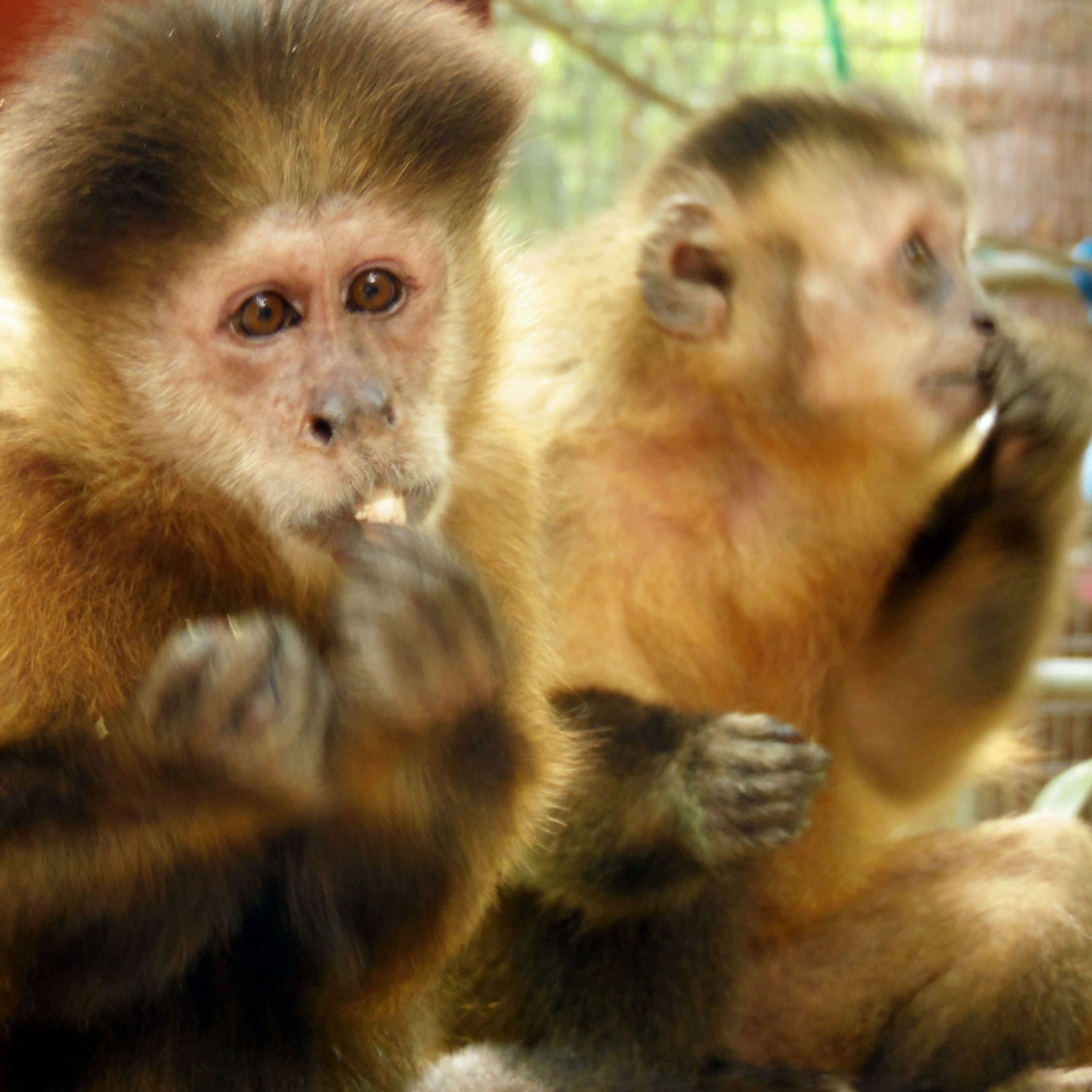 At Jungle Friends, Cosmo is one of several monkeys with diabetes, and his condition is carefully managed through a specialized diet. Despite the challenges of his health, Cosmo's friendly nature remains undiminished. He is a beacon of good spirits, eagerly seeking interaction and forming meaningful connections within his new monkey community. Cosmo's ability to adapt and flourish, finding friendship and camaraderie among his peers, highlights the resilience and enduring charm that define his character.
