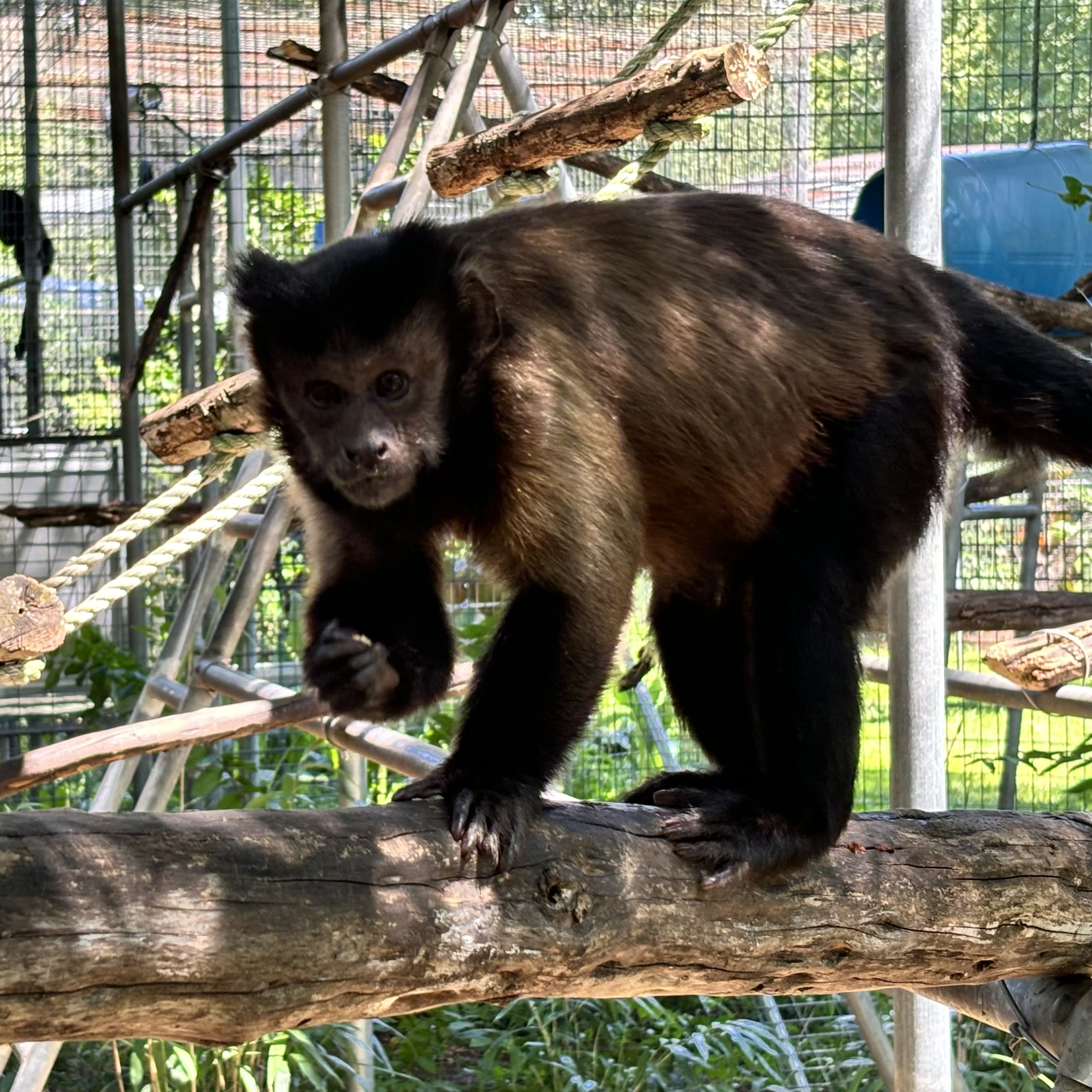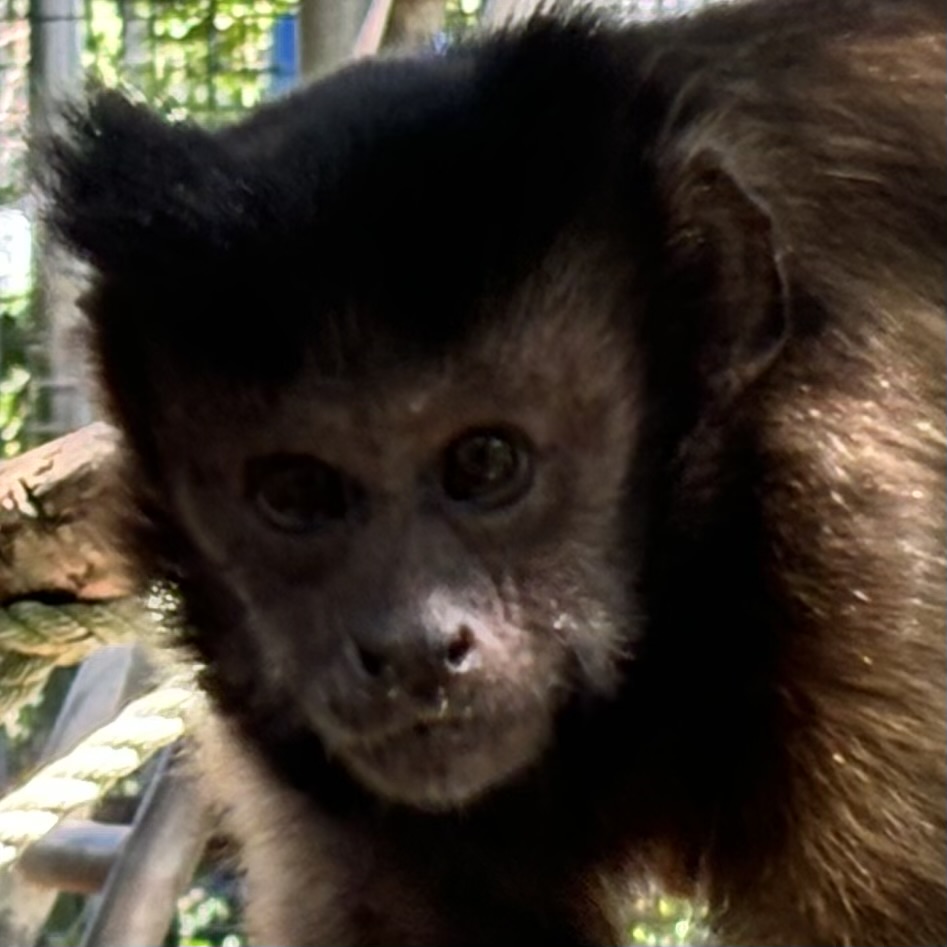 Thanks to Rachel’s excellent mothering, Skittles has developed beautifully and shows none of the stereotypical behaviors often seen in monkeys raised in captivity, such as rocking, digit-sucking, or self-grasping. Together, Rachel, Skittles, and Aunt Monica form a loving, close-knit family, enjoying their peaceful life at Jungle Friends, where they can live in safety and harmony.
