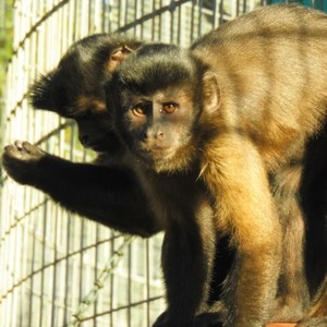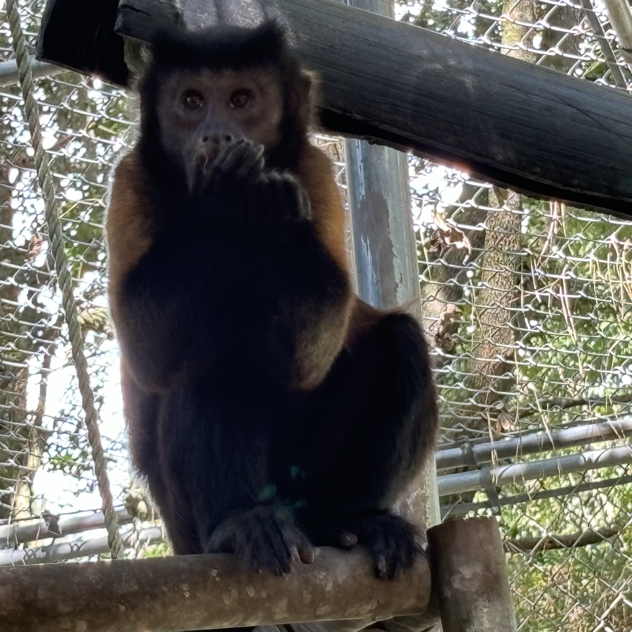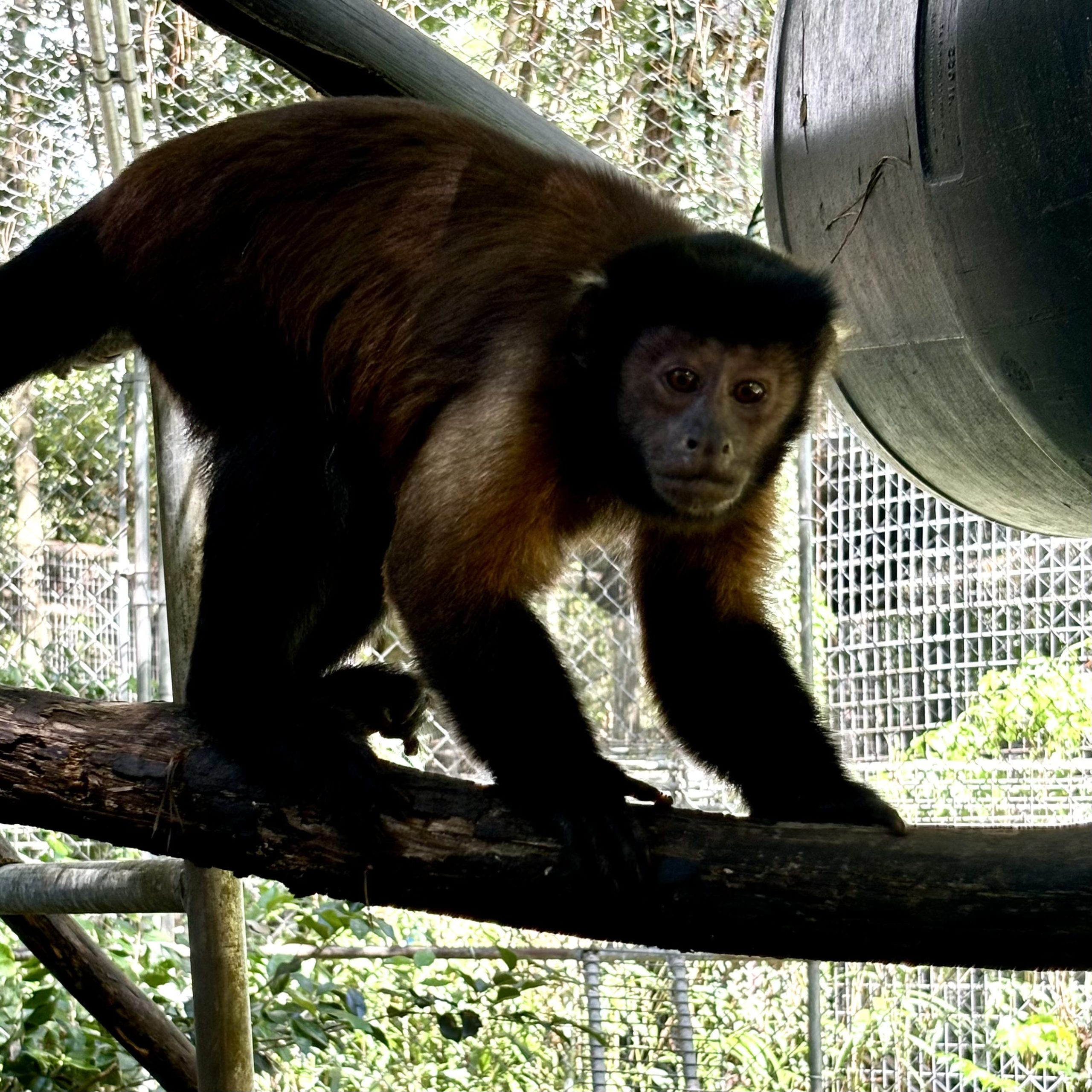 Skittles, her mom Rachel, and Aunt Monica were then relocated to their own habitat to focus on the new arrival. Unlike some other monkeys who have had human interaction, Skittles is entirely in touch with her natural monkey instincts. Raised solely by monkey parents, she's a pure bundle of capuchin energy, with no humanized behaviors. She spends her days climbing, swinging through the trees, foraging for treats, and engaging in all the playful, instinctual monkey activities that she loves. Skittles is a happy, healthy monkey who embodies the essence of wild capuchin behavior, free to express herself as nature intended.