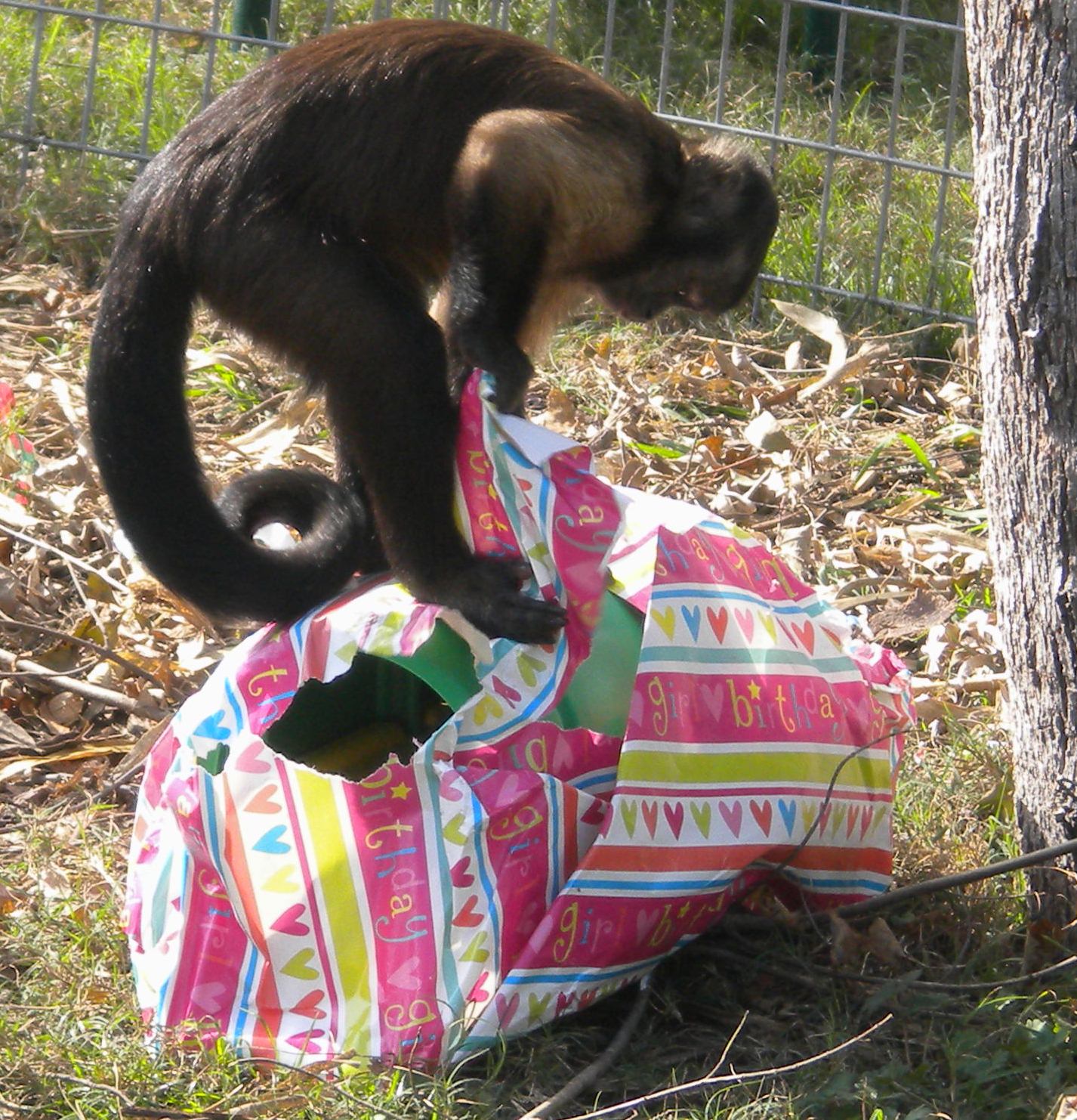 Today, Zumie is known for her sweet nature and love of adventure. She enjoys exploring her surroundings, climbing trees, and swinging through her habitat with grace and joy. And if there’s one thing Zumie loves, it’s presents—whether it’s a new toy or a tasty treat, she’s always eager to see what surprises are in store. As a big sister to another young monkey, Dylan, Zumie has shown the same nurturing spirit, proving that her heart is as big as her playful personality.