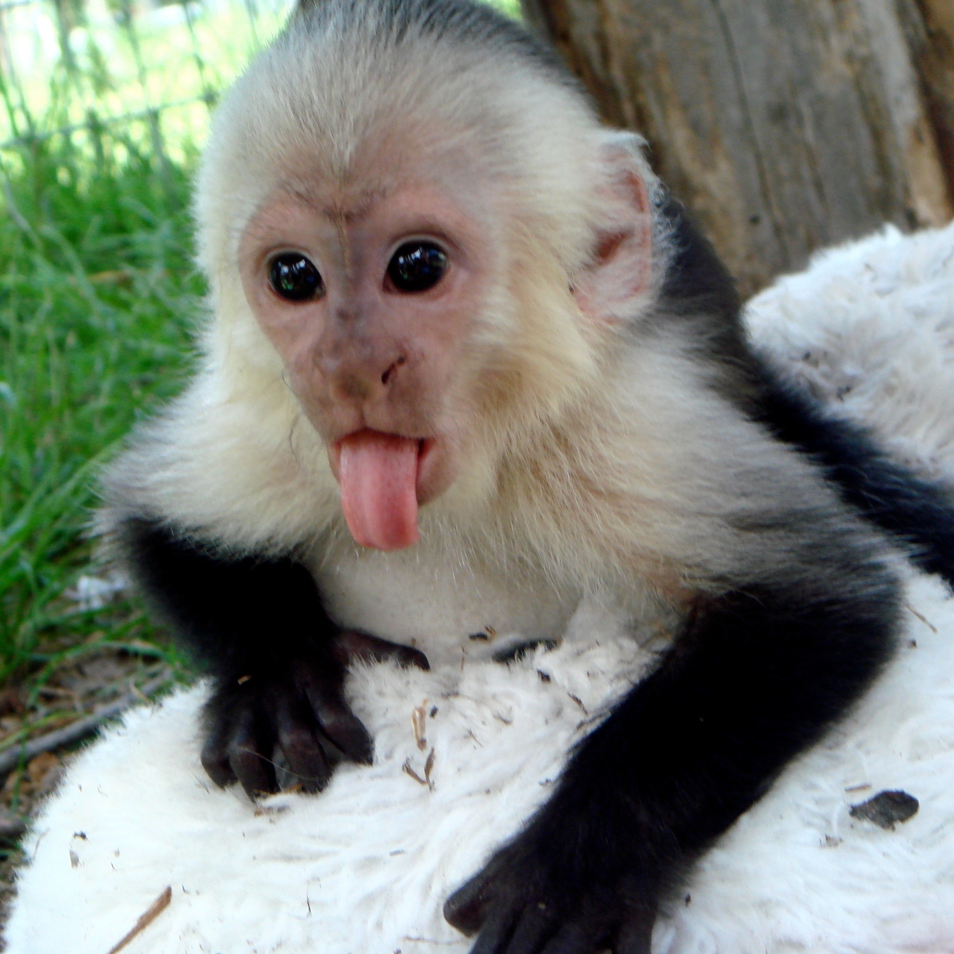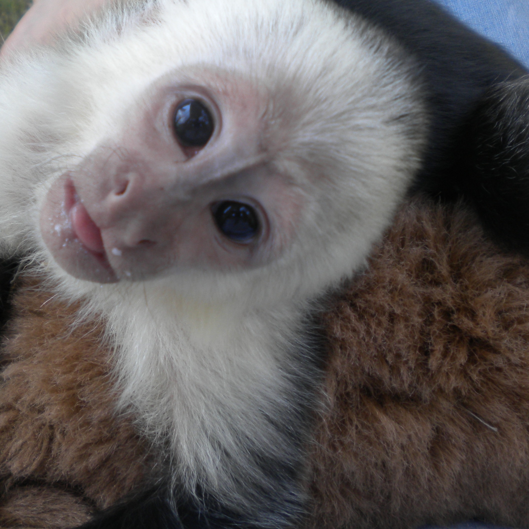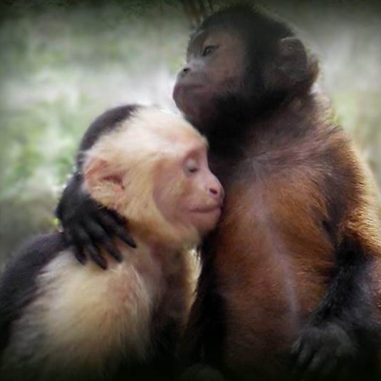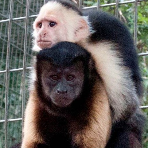 When baby Dylan arrived at Jungle Friends, he clung to a stuffed animal, rocking back and forth—a heartbreaking sign of his need for a mother monkey's comfort. Luckily for Dylan, he received a warm welcome. Monkers, a young adult monkey, adopted him as her own, carrying him on her back and bringing him down to his caregivers for his bottle at feeding time.