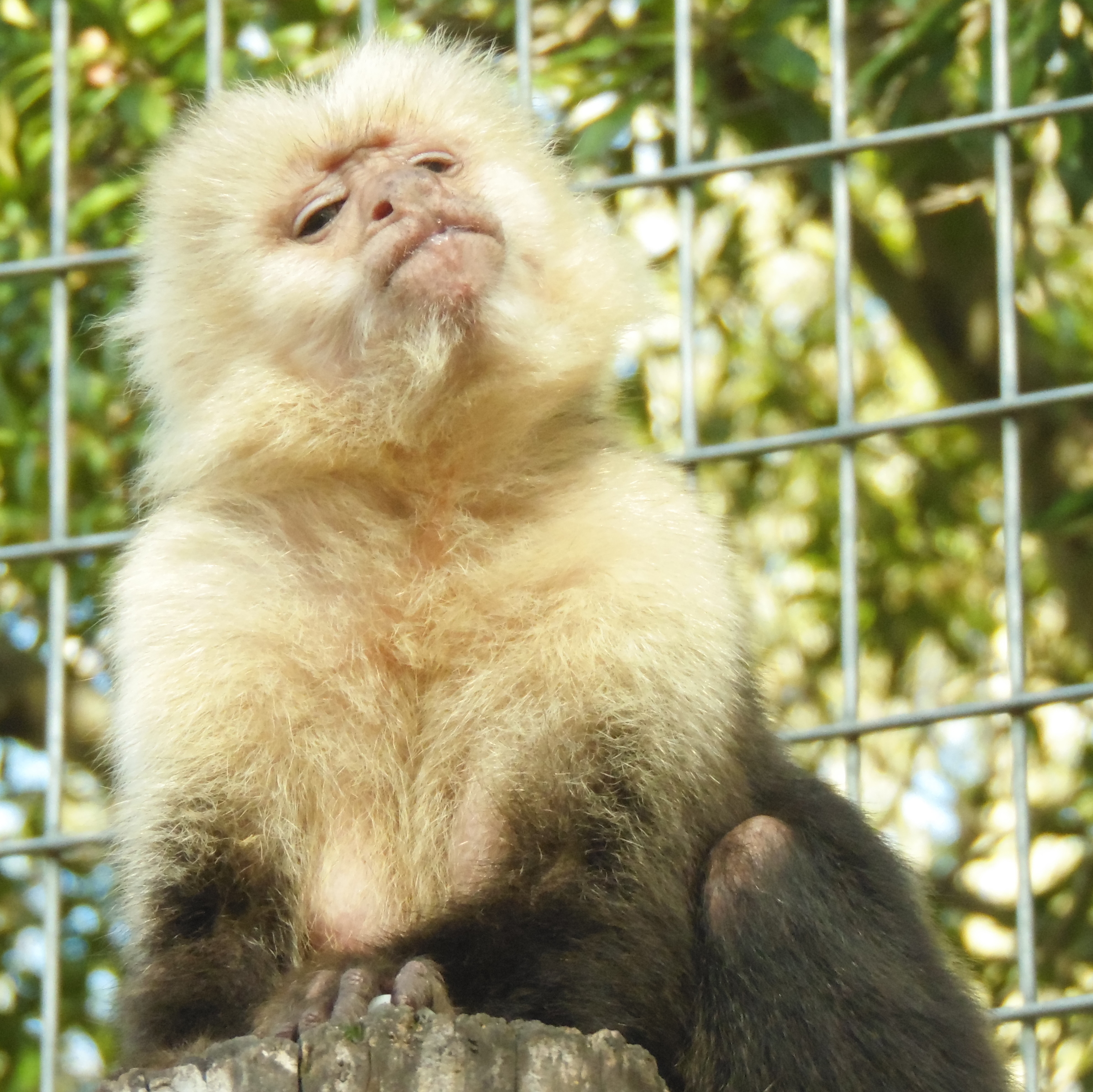 Known affectionately as ‘The Princess’ for her grace and beauty, Kelli also goes by the nickname "The Social Climber." She can often be found scaling the trees, chatting with Corky, neighboring monkeys, and caregivers alike. Her lively and sociable nature is evident in her love for a good game of catch, which she can play for hours. Grooming sessions with Corky are another favorite pastime, a bonding ritual that deepens their close relationship. As night falls, you can always find the two nestled together in their cozy bedding, a testament to the loving companionship Kelli has found at Jungle Friends.