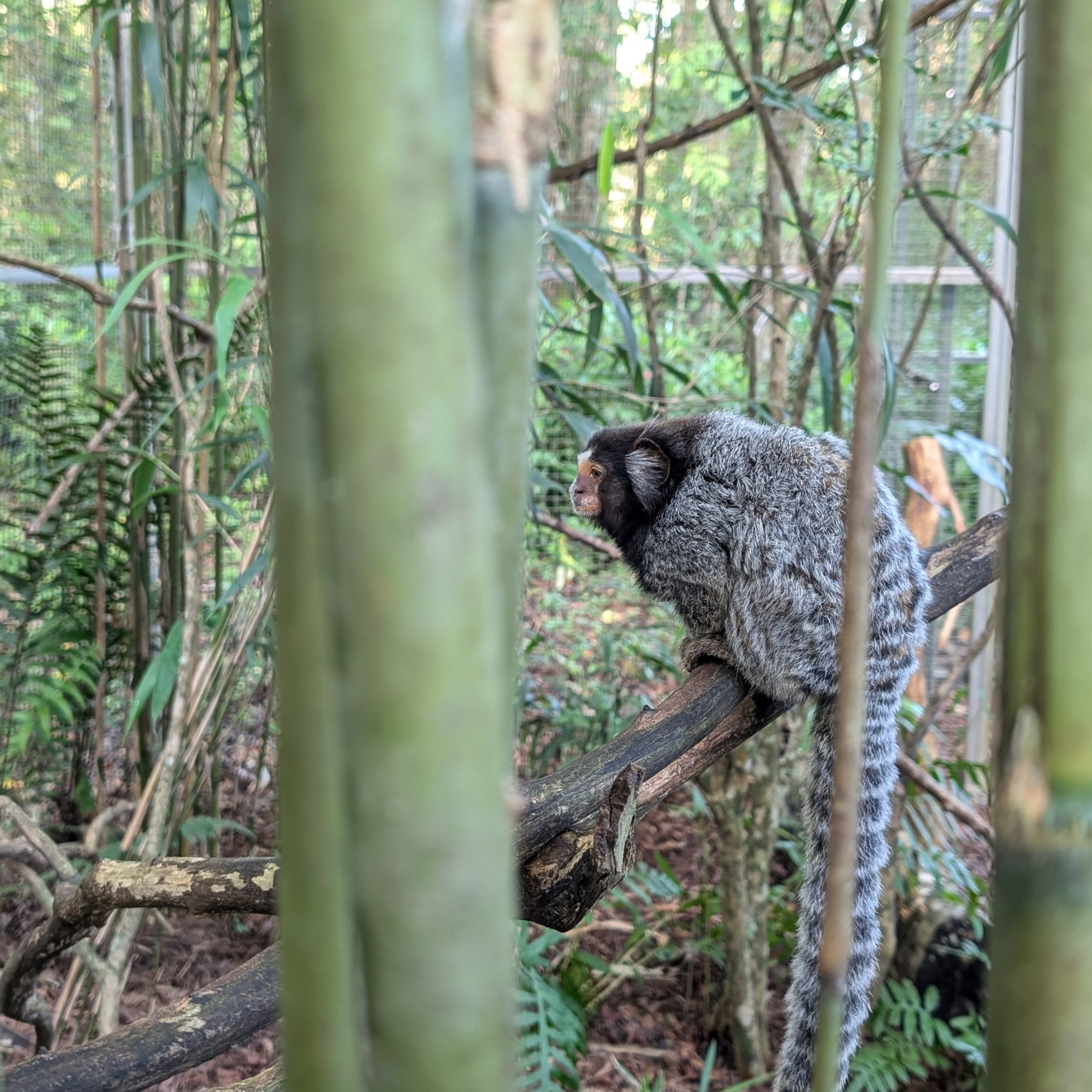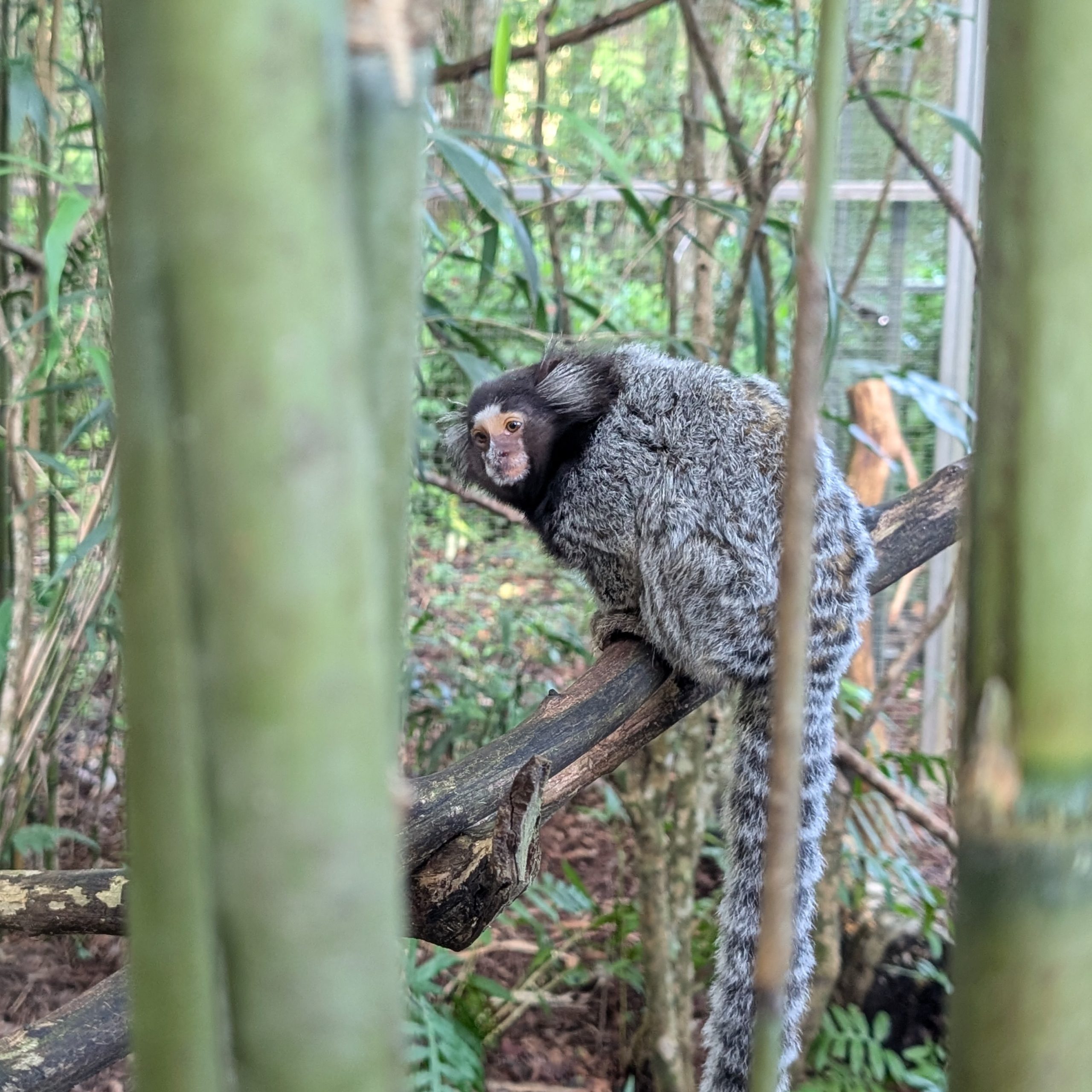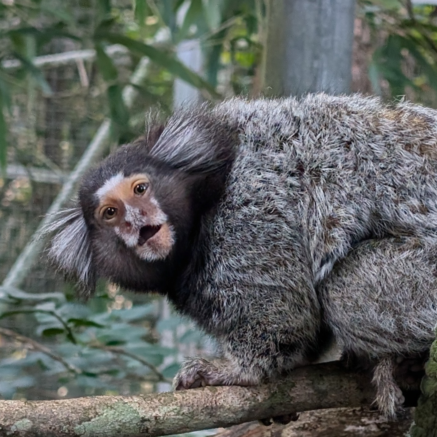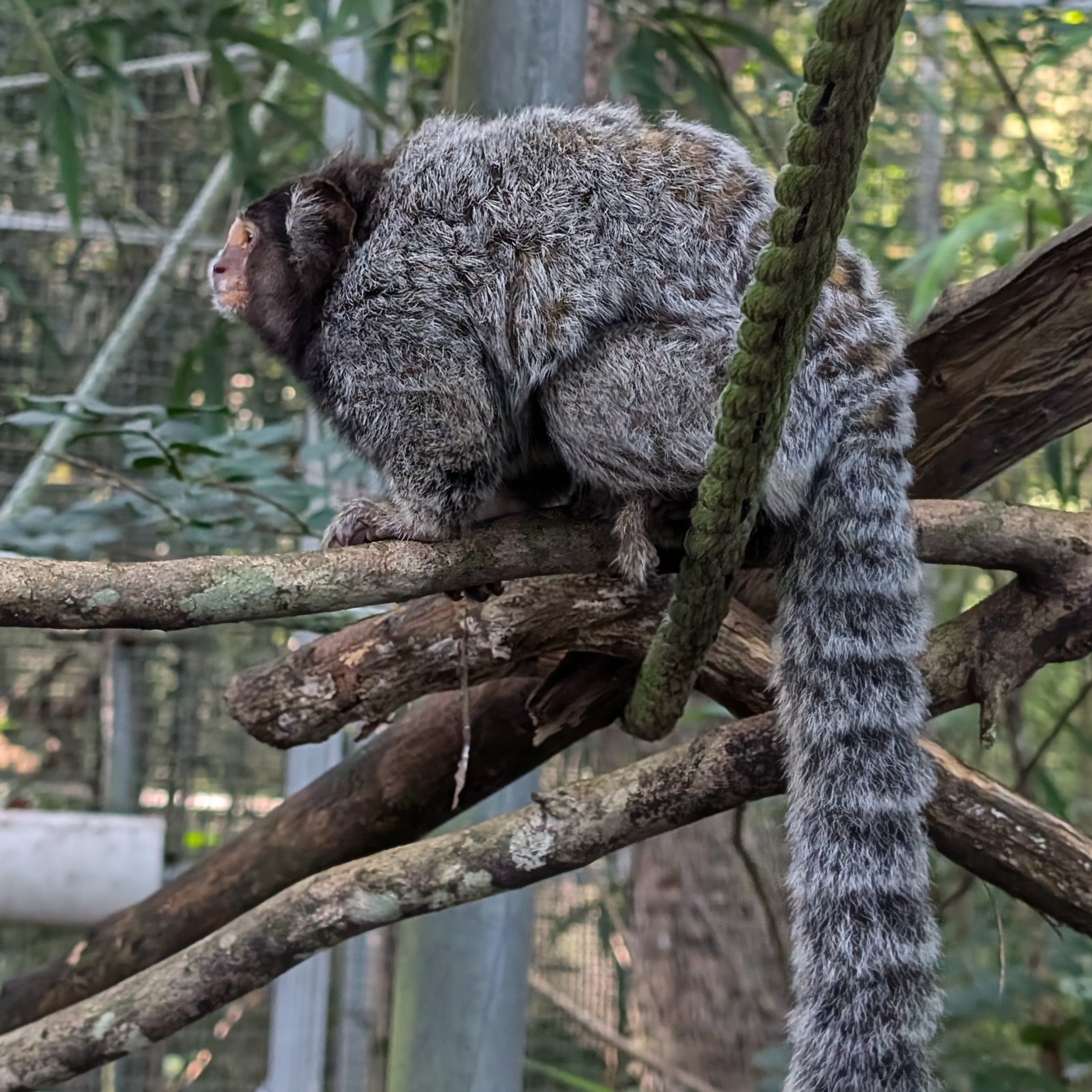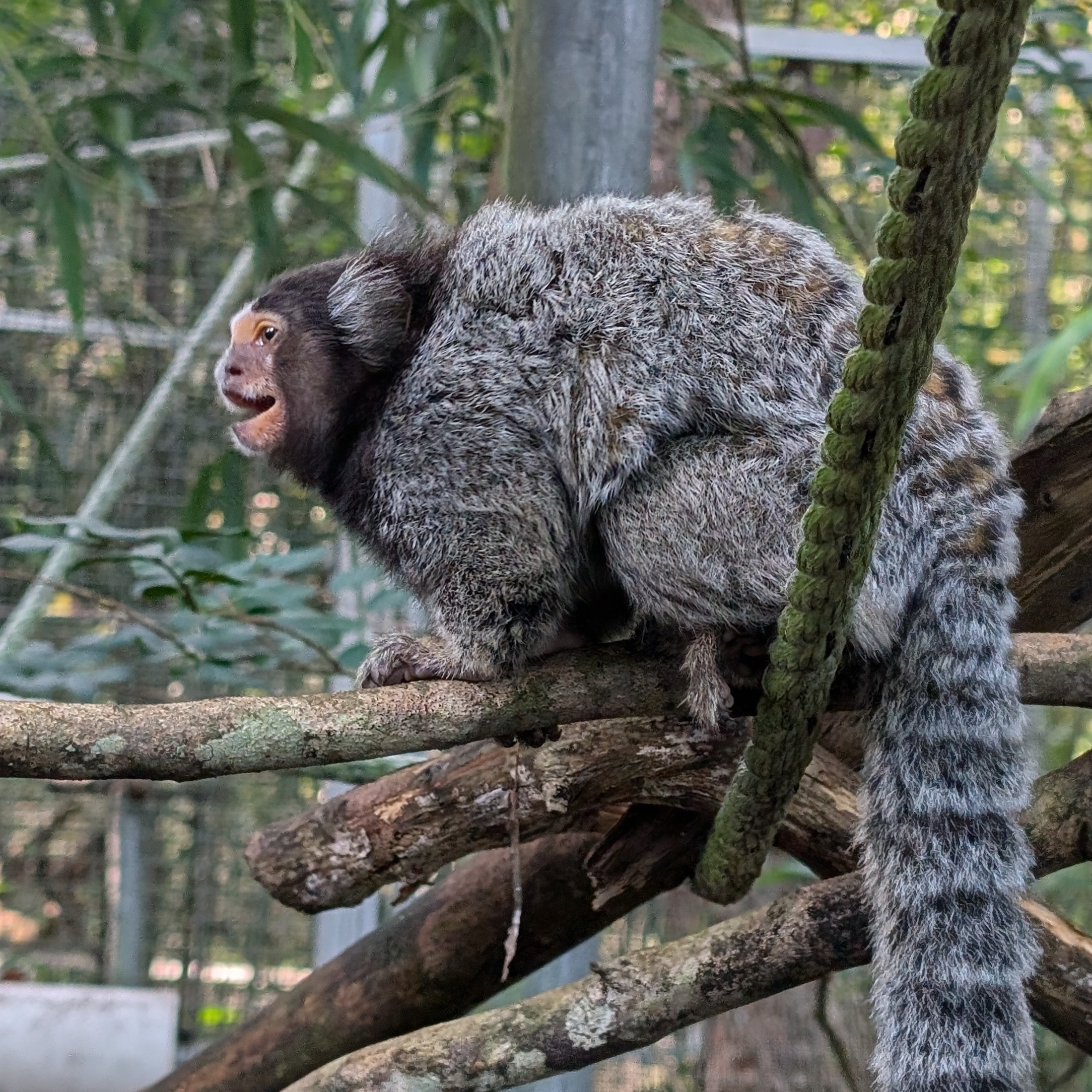 Since arriving at Jungle Friends, Zafera has claimed her outdoor habitat like a queen claiming her throne. She’s constantly darting between her indoor and outdoor enclosures, keeping close watch on her monkey neighbors, the caregivers, and most importantly, any snack deliveries. Her favorites include cereal and just about anything crunchy.