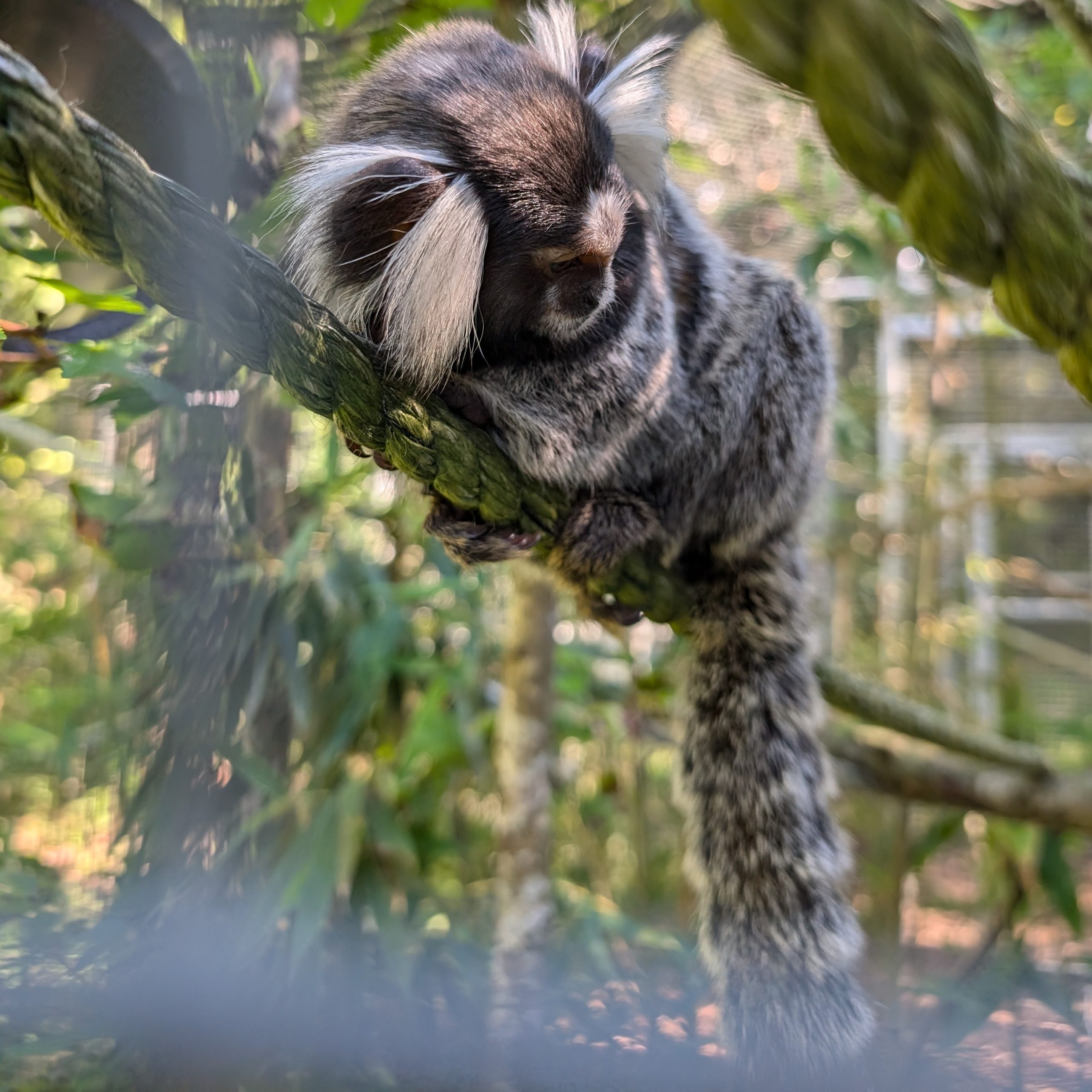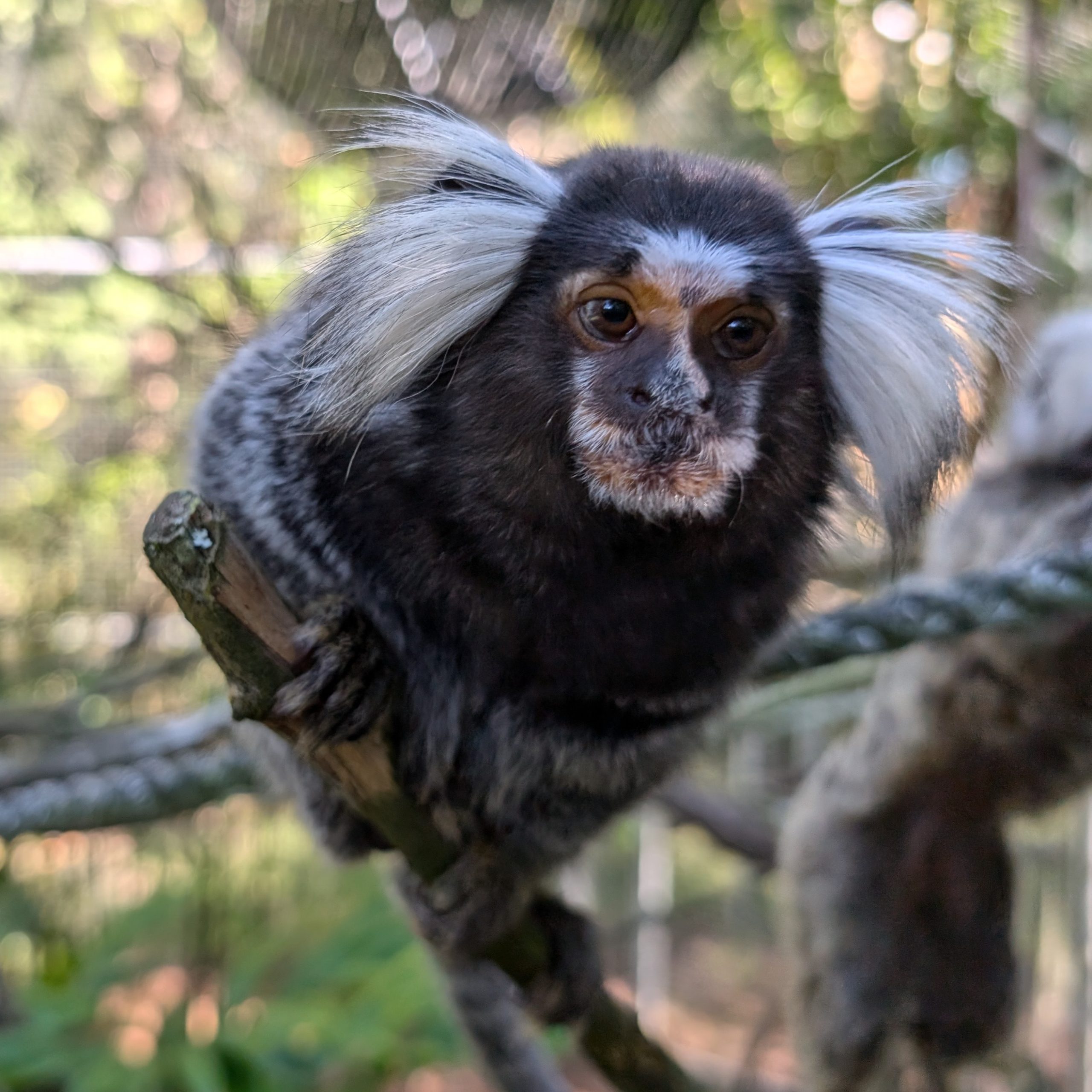 These days, Leiah is living her best almost-wild life, and her vibrant personality shines in everything she does. She's a curious soul who always seems to know what's going on, often the first to investigate a new sound or visitor-and she's never shy about expressing her thoughts through her signature sassy chatter and iconic threat face, often delivered to her neighbors. With a sparkle in her eye and energy to spare, Leiah races through her habitat like a whirlwind, keeping her neighbors (and the humans) guessing what she'll do next. Whether she's orchestrating a game of chase, stirring up a little harmless drama, or simply holding court with her expressive commentary, Leiah brings nonstop excitement and fun to her corner of Munchkinland. She may be small, but she's got a big personality-and she's not afraid to let it shine.