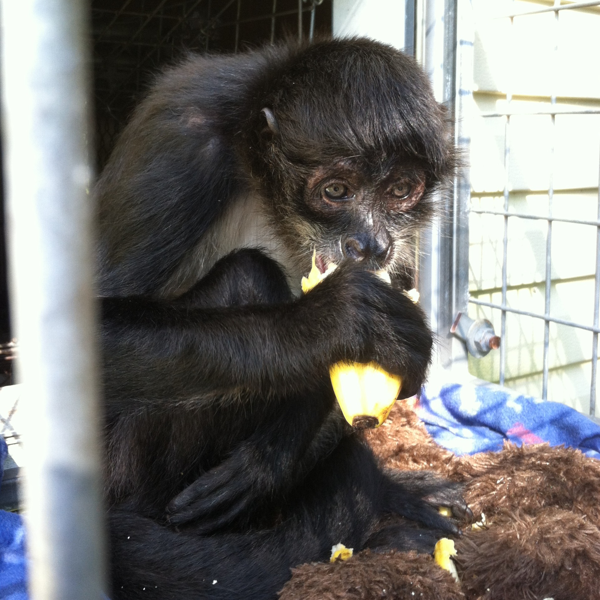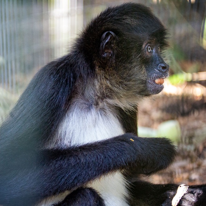 These days, Molly is best known for her sweet nature and love of snacks. If she spots something tasty, she stretches both arms out excitedly, making happy sounds that never fail to make her caregivers smile. She also shares her home with fellow spider monkey Travis, and the two snuggle together at bedtime — proof that Grandma Molly enjoys good company.