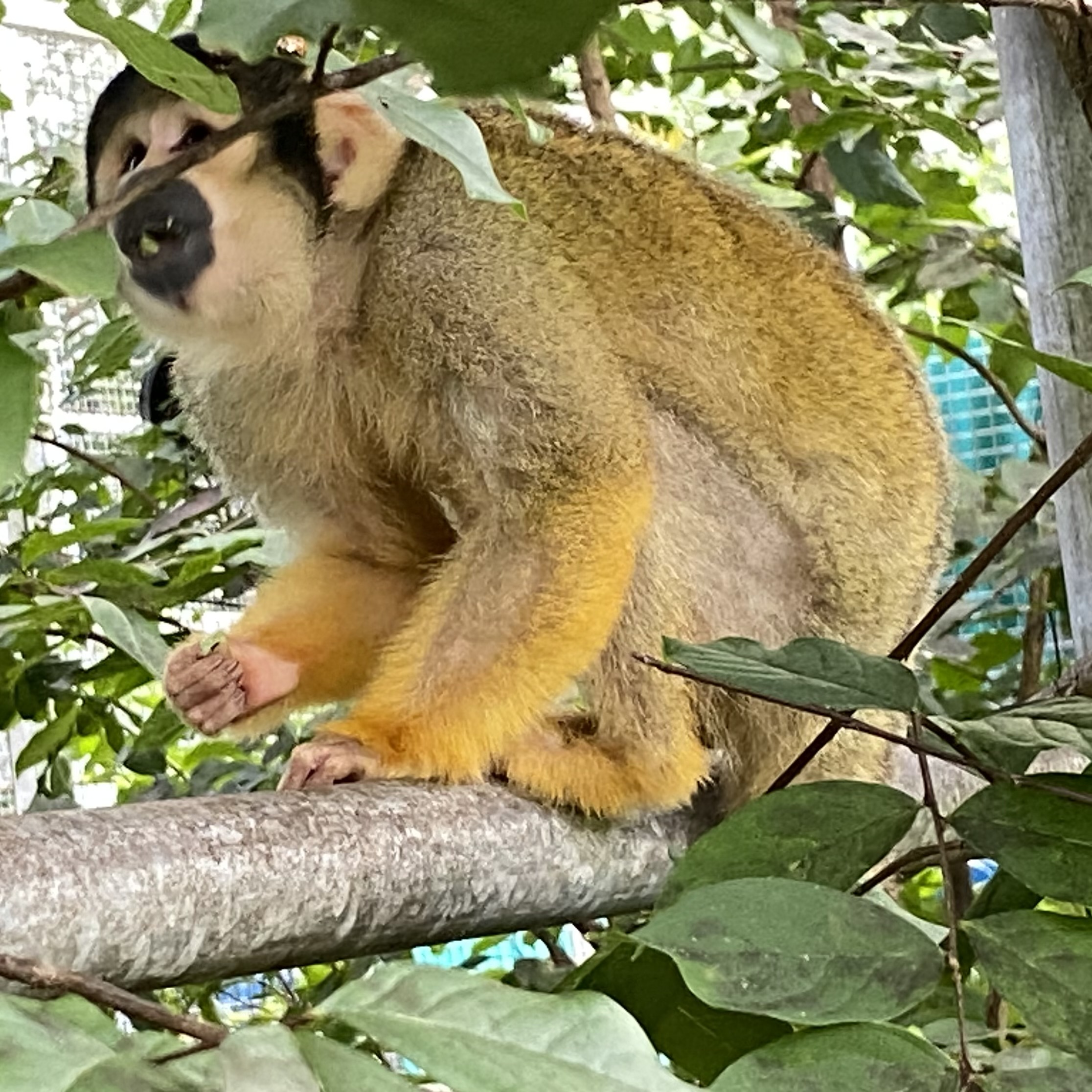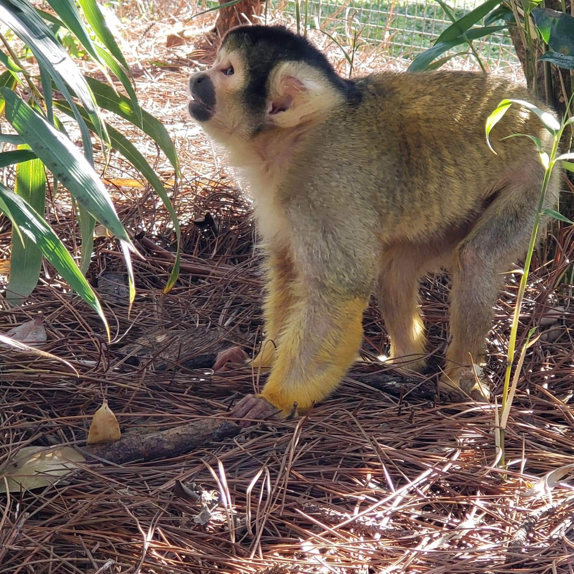 Gus quickly became a standout among his new neighbors. With his calm demeanor and confident presence, he’s the silent leader of the group, a role he fills with understated grace. While Gus is no stranger to heights and has been seen scaling the branches with ease, he truly shines on the ground, where he loves to forage and explore. Gus takes pleasure in the simple joys of his environment, whether it’s the thrill of a tasty snack or the companionship of his friends.