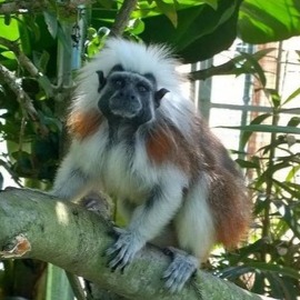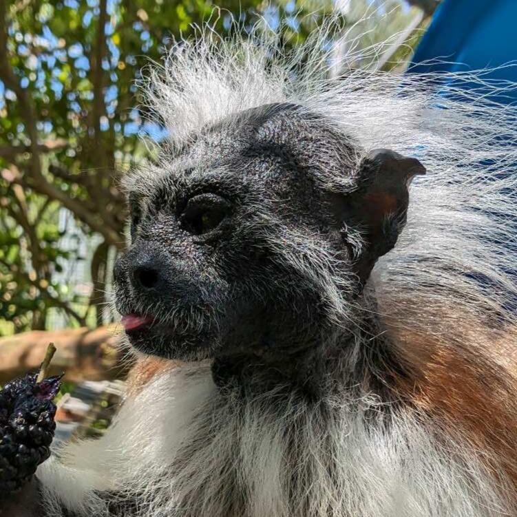 Bluebell, a cotton-top tamarin, began a new chapter at Jungle Friends in April 2015, along with 32 others, after the closure of their former laboratory home. Initially paired with another tamarin, circumstances led to their separation. But fortune smiled upon Bluebell, first in the form of Mr. Ed, her beloved companion with whom she shared a deep and joyful bond. From their very first grooming session, the two were inseparable, and Bluebell blossomed under his steady presence.