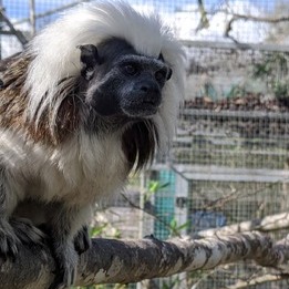 Naturally shy and cautious, Kali took her time adjusting to her new outdoor home. The wide-open spaces and unfamiliar surroundings were a big change, and she preferred to take things slow – especially when it came to people. But her story began to blossom the moment she was introduced to a fellow cotton-top tamarin who, like her, was looking for a friend. Their bond was instant and heartwarming. With her new partner by her side, Kali found the confidence to step outside, enjoy the sunshine, and explore the world around her with a new sense of security. These days, you'll often find her lounging in the sun with her companion, soaking in the peace of sanctuary life.