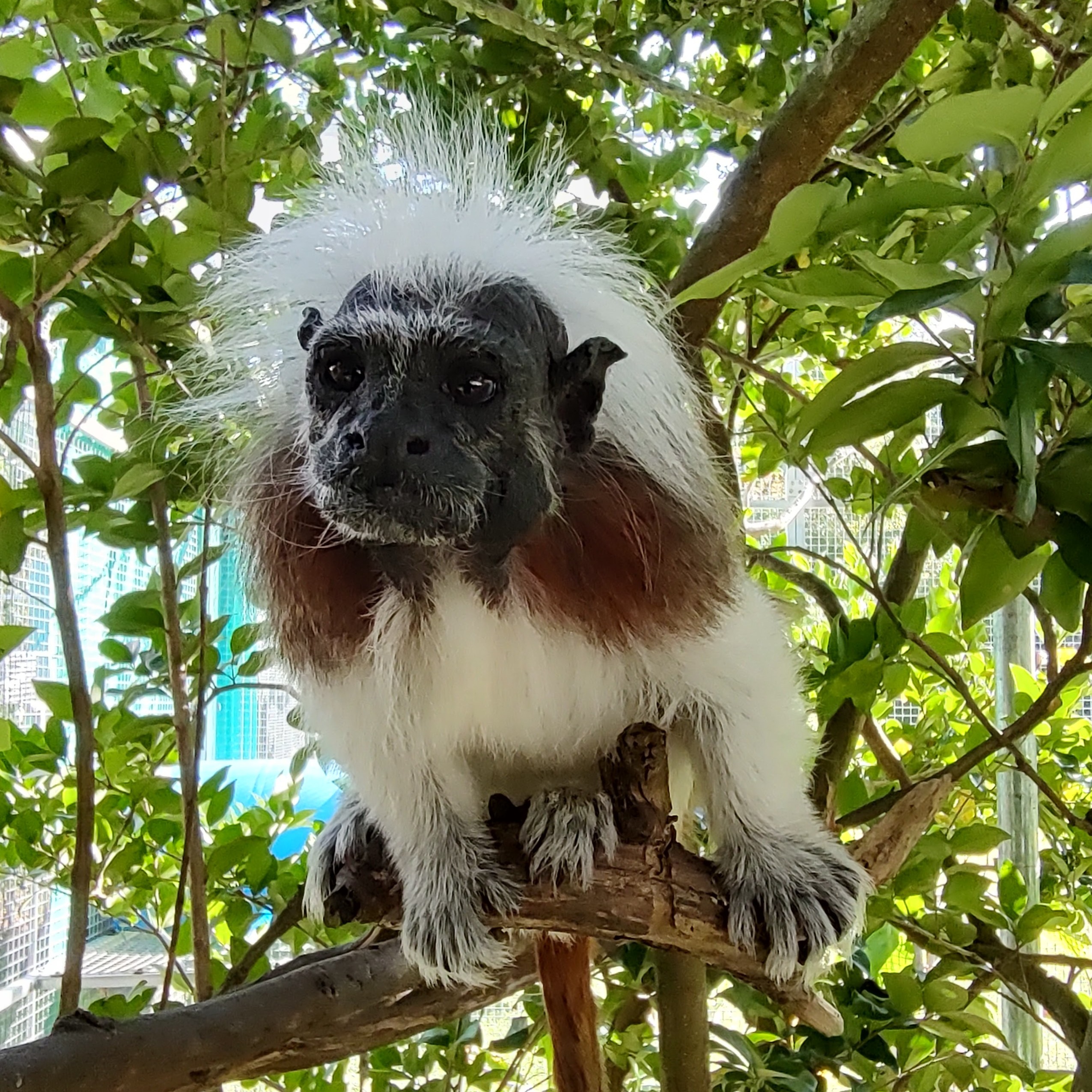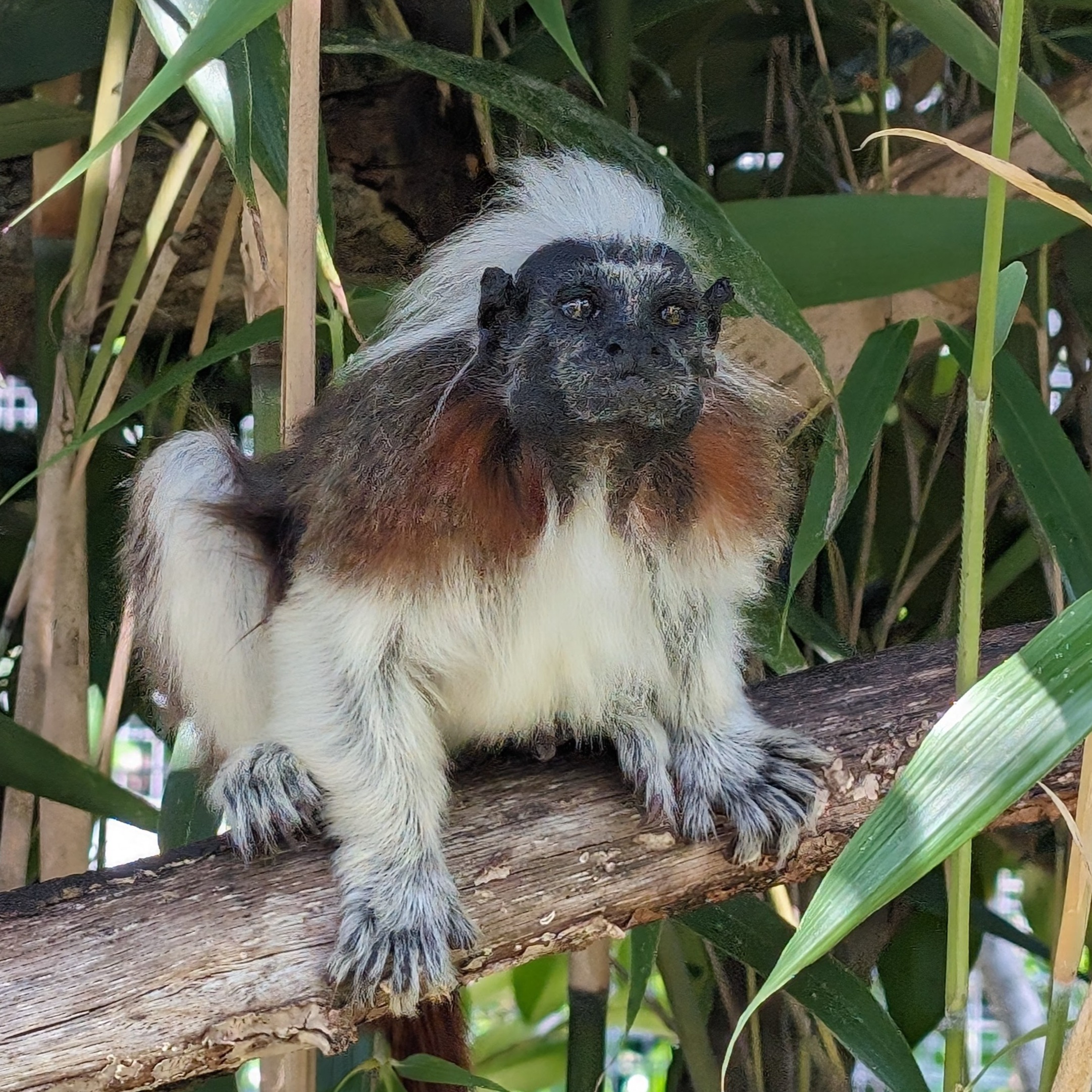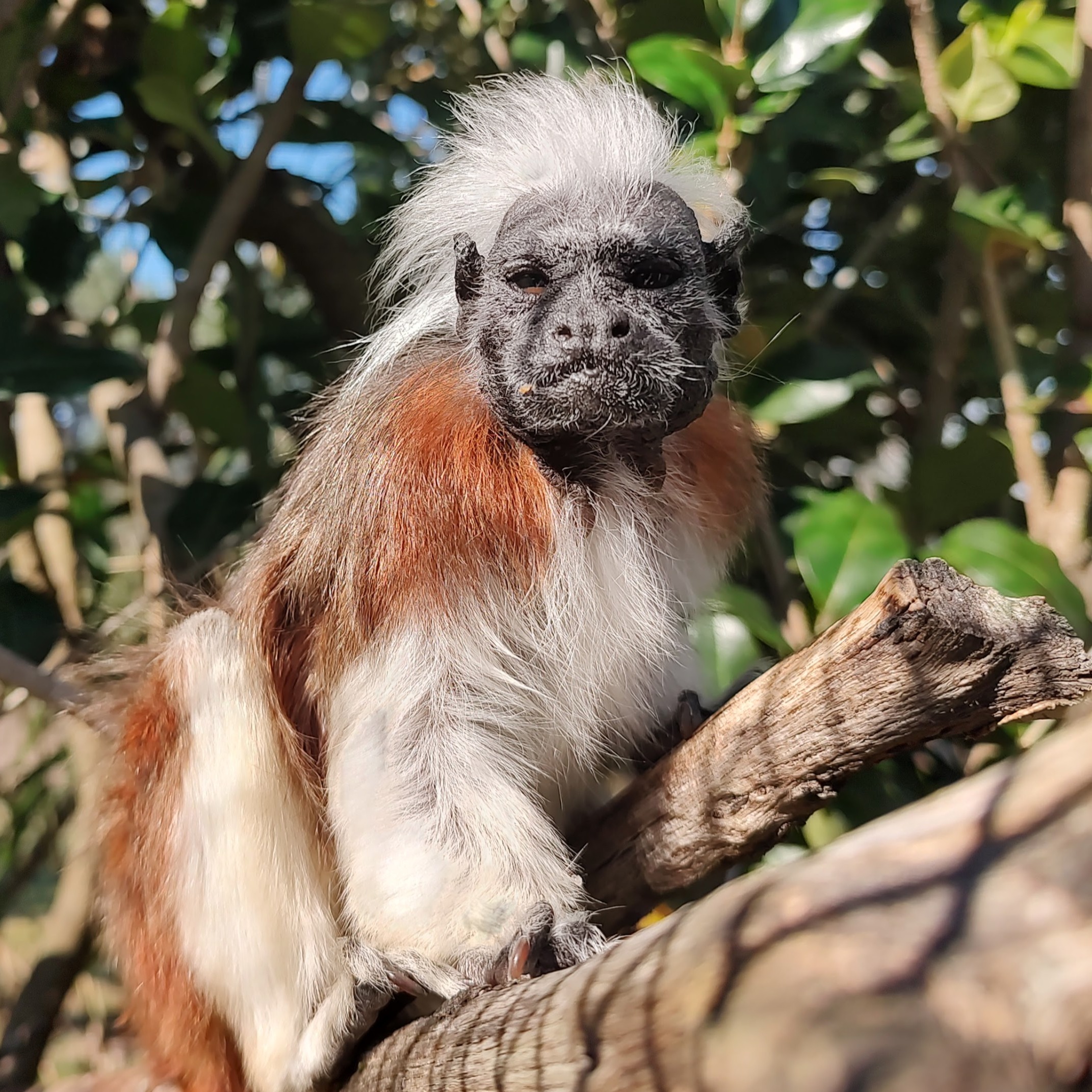 Toad arrived at Jungle Friends in April 2015 as part of a group of 33 cotton-top tamarins rescued after the closure of a laboratory. Having lived his entire life indoors, the great outdoors was a brand-new adventure, and Toad dove right in! He was one of the very first in his group to step outside, and he's never looked back.