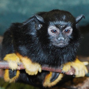 Aliyah was born with uniquely short limbs, making her even smaller than your average tamarin – but don't let her size fool you! She's a bold explorer who loves climbing trees and patrolling the runways of her outdoor habitat. Her short arms have even earned her the nickname "T-Rex," especially when she stands up on her back legs to investigate something new, holding her tiny arms close to her chest just like a curious little dinosaur.