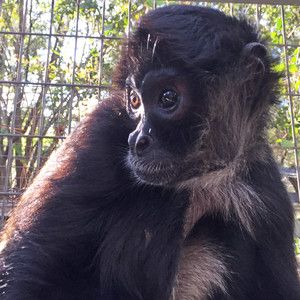 Spider monkeys are native to tropical forests from southern Mexico to Brazil. They require large tracts of undisturbed forest and feed on ripe fruits. Spider monkeys live in evergreen rainforests, semi-deciduous forests, and mangrove forests, almost never coming to the ground. They travel in groups of two to nine but form loose groups of 15 to 25 individuals.